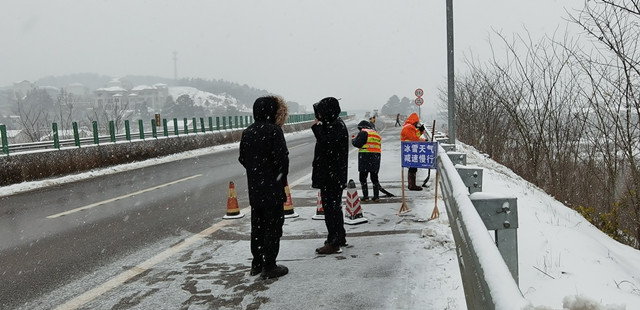 現(xiàn)場巡查道路、橋梁積雪結(jié)冰的情況,避免出現(xiàn)交通事故
