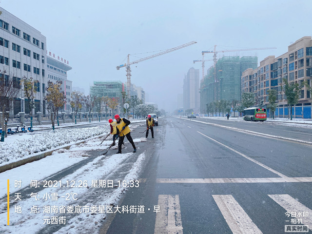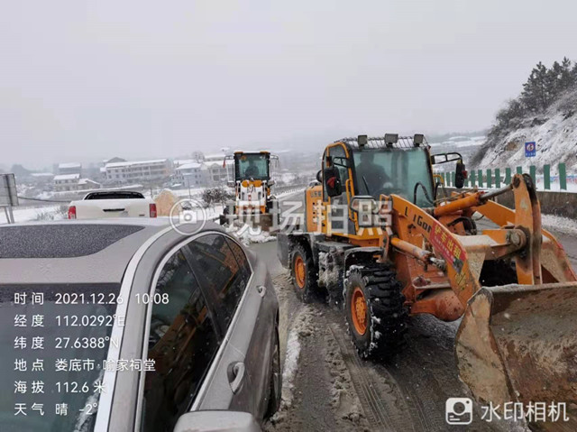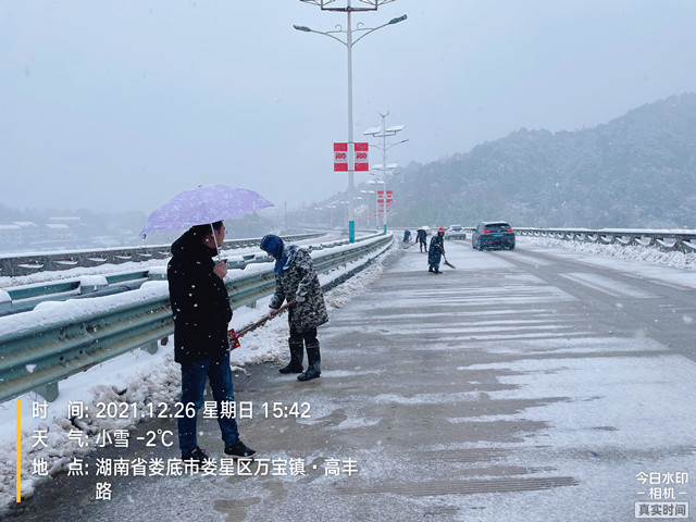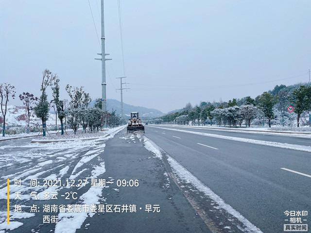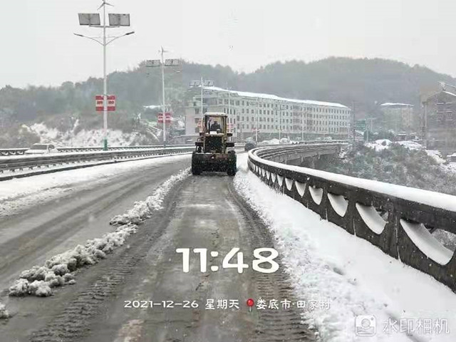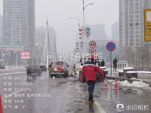 婁雙公路通行正常,未出交通事故,市政維護處正在鏟雪,準備撒鹽,確保橋面不結(jié)冰