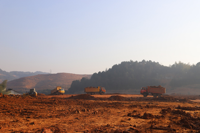 圖為豐園安置基地來(lái)來(lái)往往的土石方運(yùn)輸車輛。