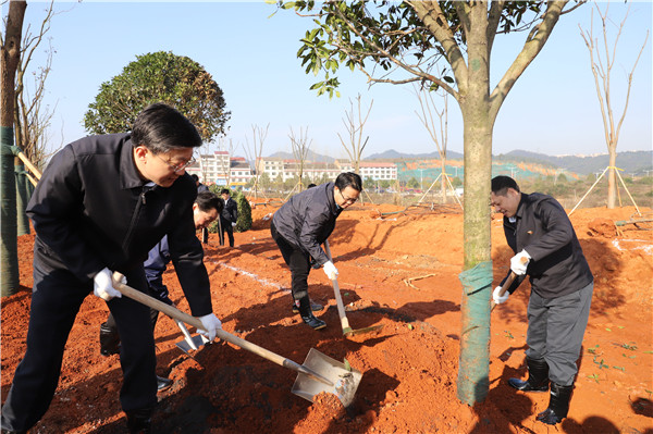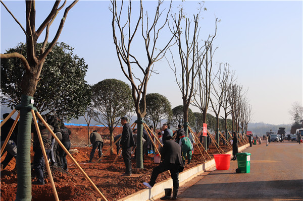 經(jīng)過(guò)一上午的忙碌,植樹(shù)隊(duì)伍共280余人使300余株欒樹(shù)、樟樹(shù)、桂花樹(shù)、櫻花樹(shù)等優(yōu)質(zhì)樹(shù)苗、樹(shù)種“安家落戶”。春風(fēng)拂過(guò),一株株新栽種的苗木等待著吐露新芽,一個(gè)個(gè)綠色希望在孕育成長(zhǎng)……