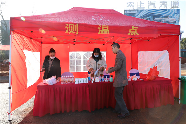 工作人員發(fā)放口罩,并對(duì)參加活動(dòng)的人員進(jìn)行測(cè)溫