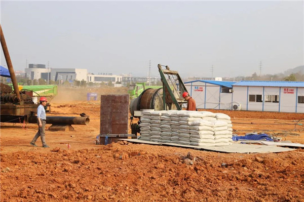 已完成全部4棟淺基礎(chǔ)。夯擴(kuò)樁試樁已完成澆筑和檢測,2月21日開始正式啟動夯擴(kuò)樁施工。場內(nèi)挖方全部挖完,場內(nèi)累計回填土方約30萬方。