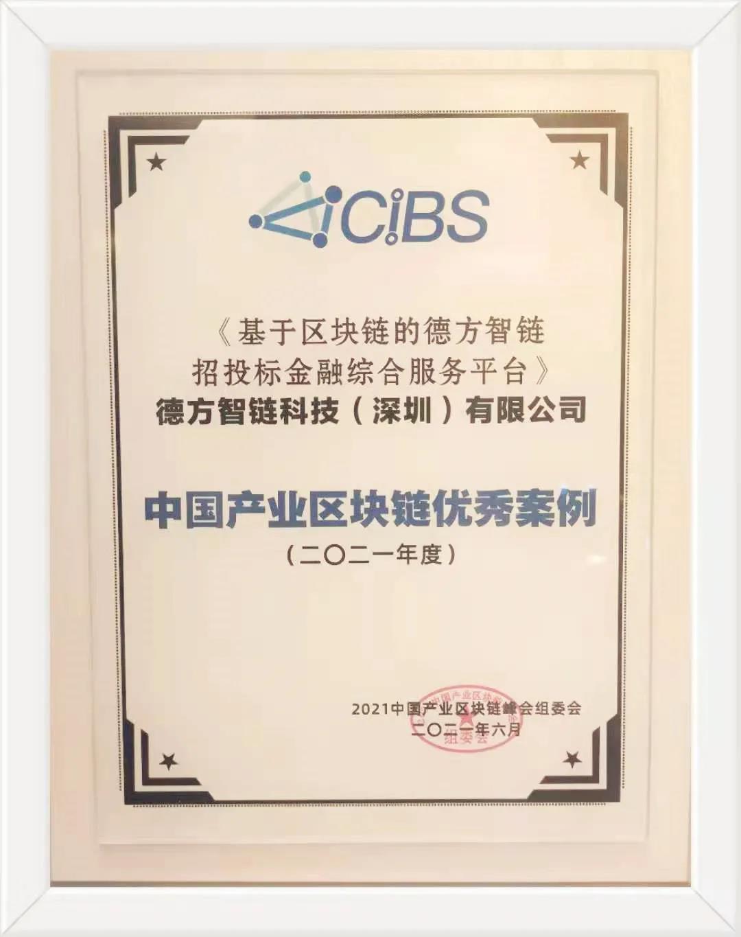 6月3日,2021中國產(chǎn)業(yè)區(qū)塊鏈峰會在湖南長沙隆重舉行,峰會以“產(chǎn)業(yè)驅(qū)動 鏈以致用”為主題,云集近百位行業(yè)知名專家、學(xué)者、企業(yè)領(lǐng)袖與相關(guān)產(chǎn)業(yè)的精英人士。德方智鏈作為產(chǎn)業(yè)區(qū)塊鏈領(lǐng)域的深耕踐行者受邀參會,并憑借在區(qū)塊鏈應(yīng)用場景鉆研多年所展現(xiàn)出的不俗成績和專業(yè)能力,基于區(qū)塊鏈的招投標(biāo)金融綜合服務(wù)平臺,榮膺“2021年度中國產(chǎn)業(yè)區(qū)塊鏈優(yōu)秀案例獎”。