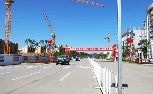 胡忠威首先實地了解早元西街、大井路、畔山街的建設(shè)情況,親切慰問建設(shè)一線的干部職工代表,隨后坐車巡覽新通車路段。